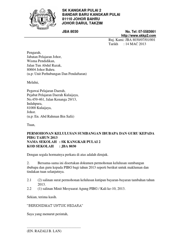 Contoh Surat Kutipan Yuran Pibg Letter 7saudara Com